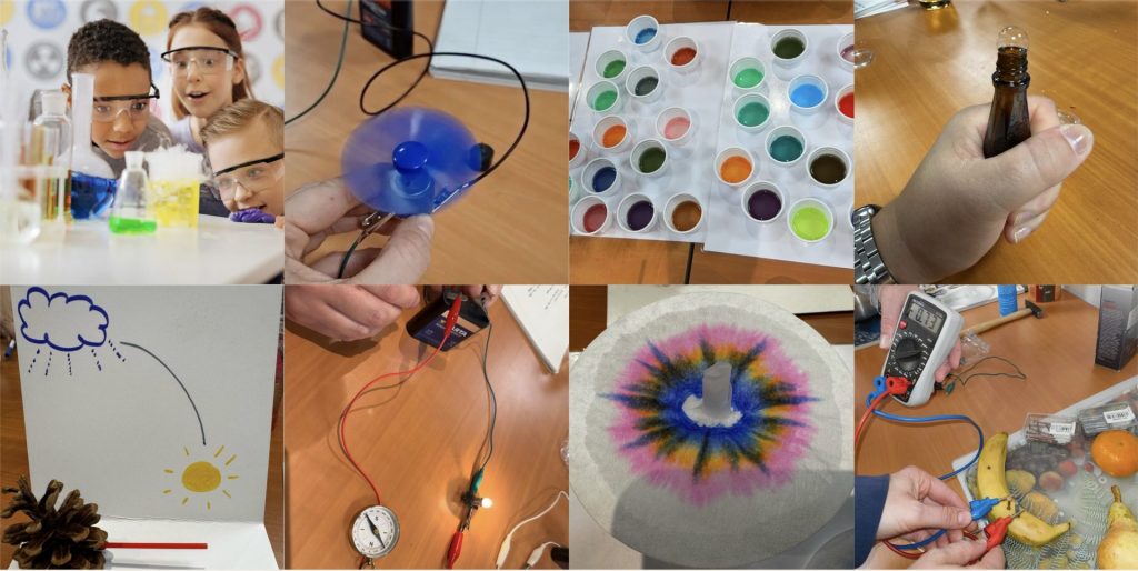 Forscherstationen bei Firmenfesten, Ferienprogramme für Mitarbeiterkinder und naturwissenschaftliche Mitmachaktionen und Forschertische auf Stadtfesten.